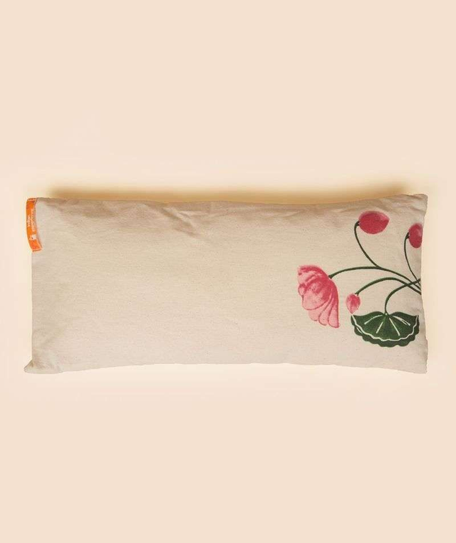 Made of organic cotton, this Pranayam cushion is embellished with a stunning print of the Indian Lotus.